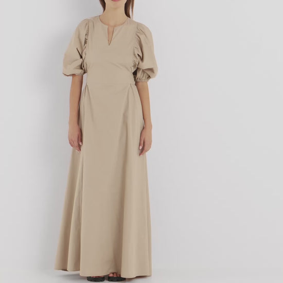 The SOSUE Antonia Long Dress in Beige combines feminine elegance with modern lightness. The flowing, extra-long cut and the characteristic ruffled Antonia sleeves give the dress a particularly beautiful, feminine silhouette.
