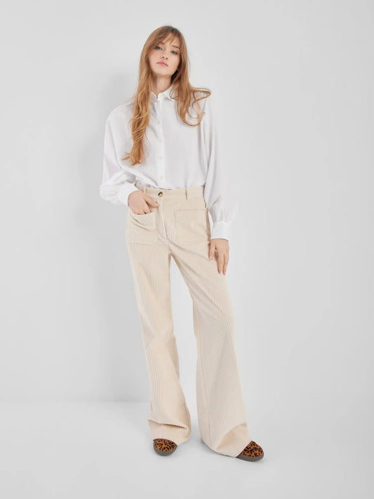 Business Cool : Associe le chemisier Antonia blanc à un pantalon en tissu noir et des mocassins – un chic sans effort pour le bureau.