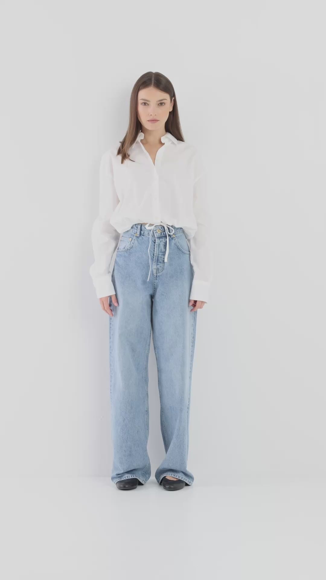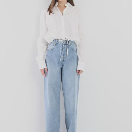 Die SOSUE Drawstring Bluse ist locker geschnitten und endet leicht verkürzt. Durch den Tunnelzug am Saum lässt sich die Weite individuell regulieren – für eine feminine Silhouette oder einen entspannten Oversized-Look.