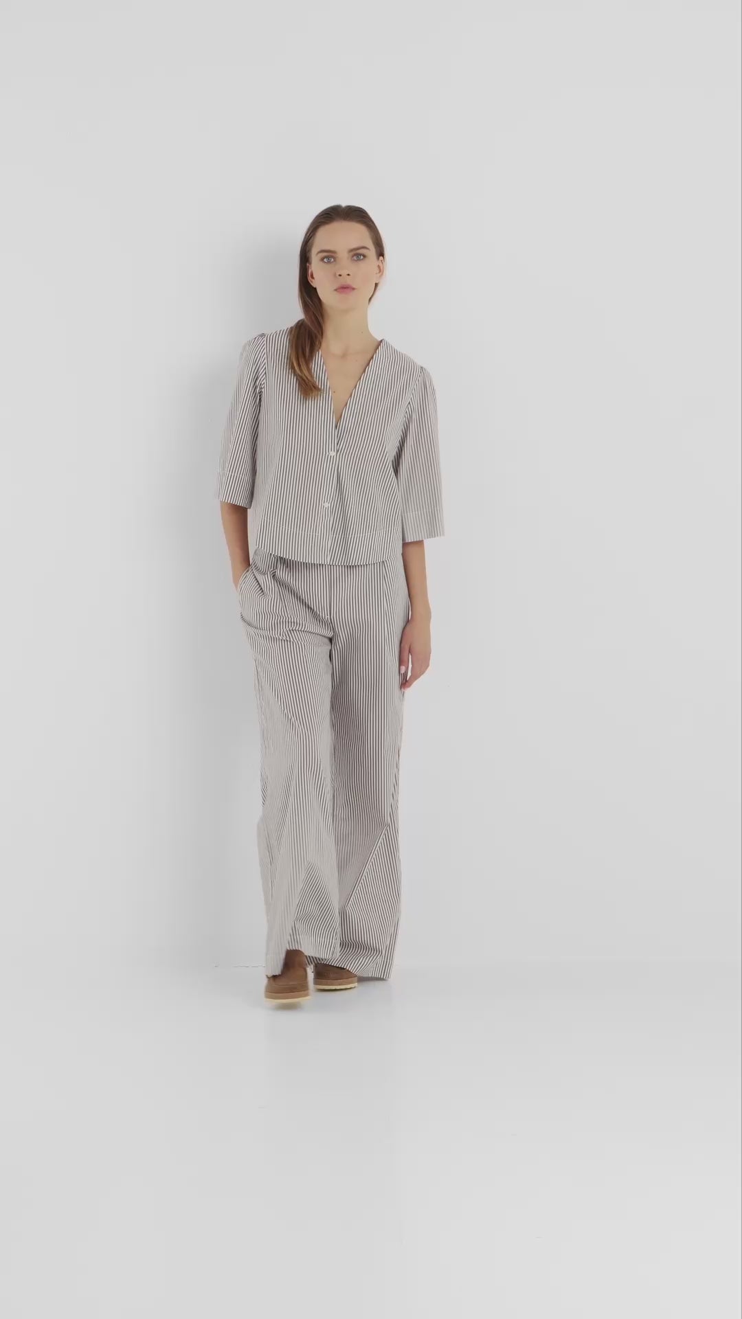 Der lockere, leicht ausgestellte Schnitt verleiht der Bluse eine moderne Leichtigkeit und schmeichelt jeder Figur. Die feinen Streifen wirken zeitlos und elegant, während das atmungsaktive Baumwollmaterial besonders angenehm auf der Haut liegt – selbst an heißen Tagen.