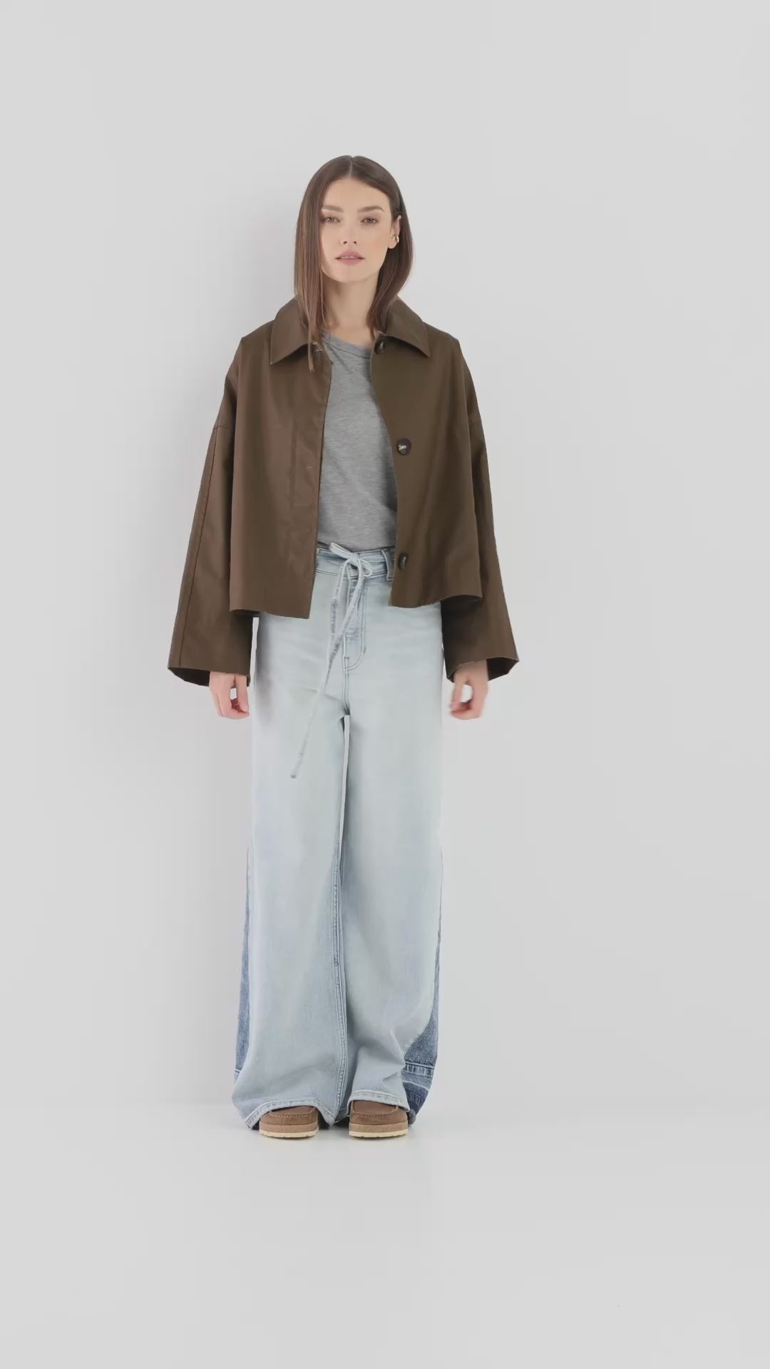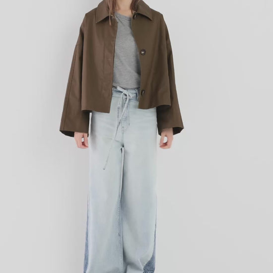 Die SOSUE Dog Walker Jacke in Khaki ist eine moderne Übergangsjacke für Damen aus einem hochwertigen, leicht gewachsten Material. Der oversized Schnitt, die markante Silhouette und die funktionalen Details machen sie zum perfekten Begleiter für Alltag, City und Casual Looks. Made in Italy.